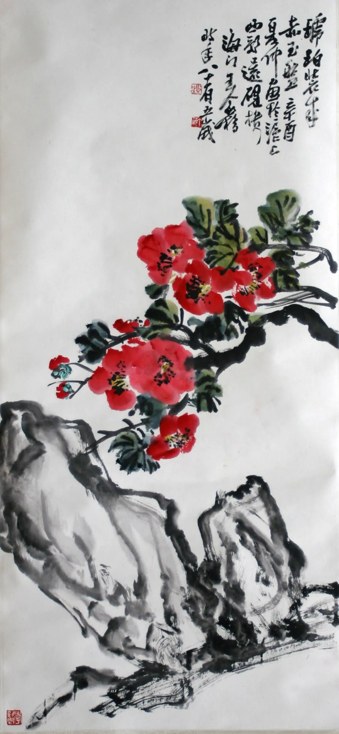 20世纪的60年代和80年代,是中国画发展的黄金时期,王个簃艺术的创新、突破也正是在这两个时期。在艺术上,他主张“豪迈”“新颖”和“明朗热烈”,要重拙大、重气势、能入俗、平正险劲、自然有波澜,“不以怪诞霸气取胜,不以娇妍媚俗”。追求用笔的“指实掌虚、心领神会”,“胸襟跌宕、元气浩浩”。布局上敢于“造险”,敢于“入俗”,矛盾中求统一,用笔“熟中生,拙中奇”,艺术上一以当十。哲学追求“一”,艺术则追求“万”,尤重丰富变化和生动性。他的创作过程,我总结为四种境界:触兴而构,画从诗意出;信笔所至,任乎情性;诗性并茂,佳句随之;挥笔立就,精心收拾。它们又都是以气为统帅,气在笔先。他作画极具充沛的创作欲,真气内充,呼之欲出,画有郁勃的生机和节奏韵律感,其作画的过程甚至更近乎诗,真是不可多得的艺术享受。特别是80岁后,他的艺术更从“有我”而进于“无我”,不知何为“画”,何为“我”,忘乎时空;不知何为“笔”,何为“形”,一片神行。九寨沟绚烂之秋色,彩泼画幅;青海湖联翩的飞鸟,情遣笔端,全是他的“心画”。更有听着芙蓉鸟的和鸣,伴着他笔底的旋律,展开着绘声绘色的“声画”新境。这种艺术的敏感,老而弥新,真正臻于 “画气不画形”的流转圆美。一个长期诚挚追求的老艺术家,其一生的经验,不是应当更受尊重而作认真的研求吗?