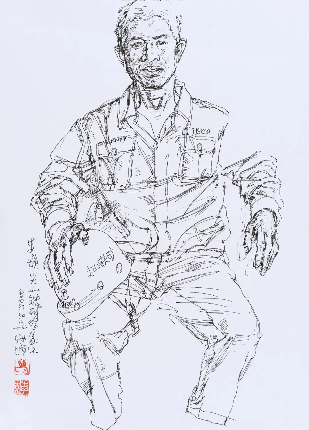 李宽 《娄烦尖山铁矿徐家元》40.5x29.5cm 速写 2025年