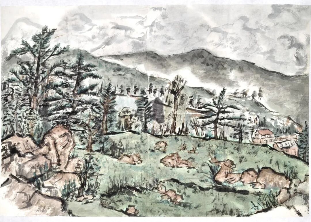 林容生 《山西太原娄烦云顶山写生》45x67cm 中国画 2025年