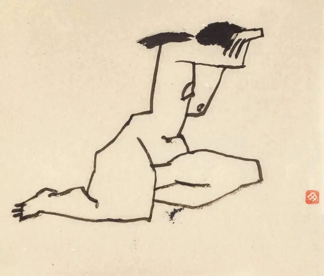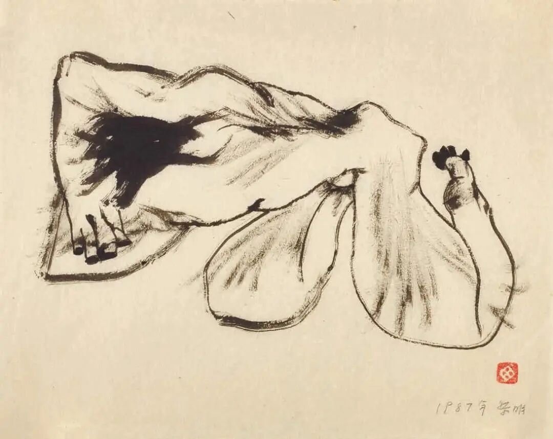 田黎明 课堂写生组画1 19.5cm×24.5cm,20.5cm×25.5cm 1987年