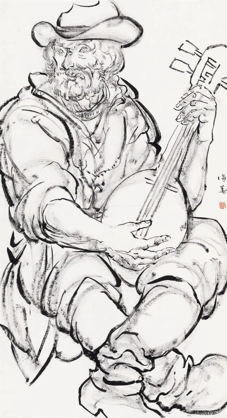刘巨德 抱琴的艺人 178cm×96cm 2015 年