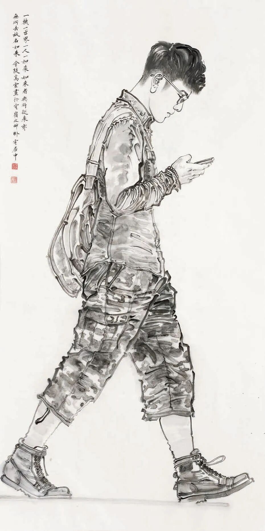 高云 都市行者之五 137cm×70cm 2014年 德基艺术博物馆藏