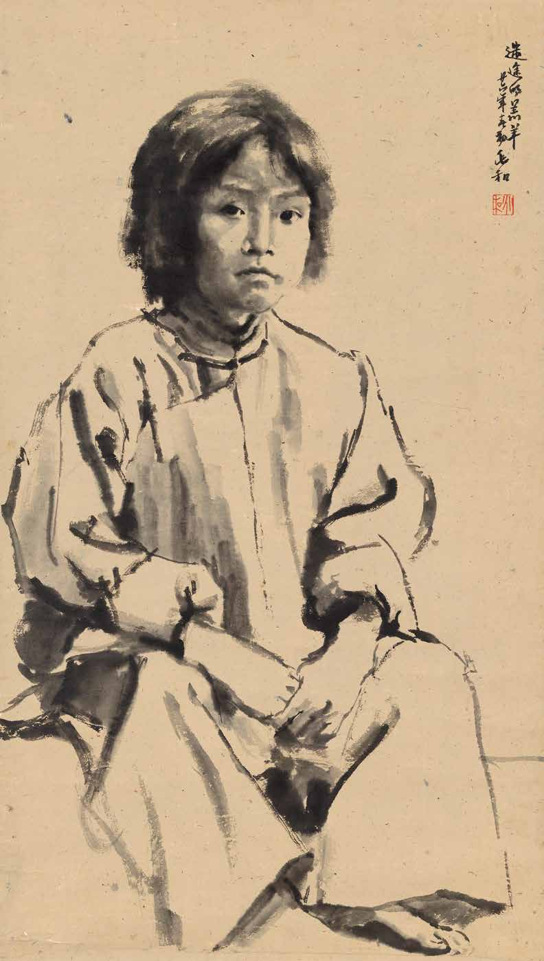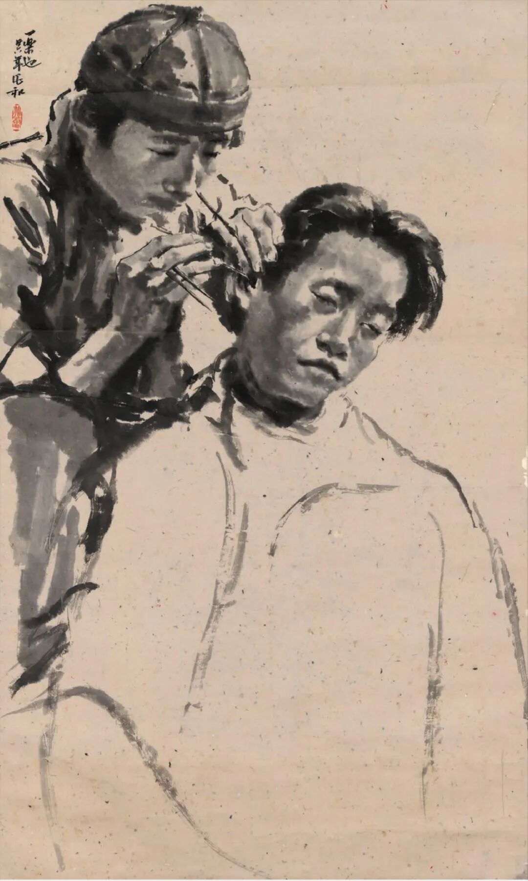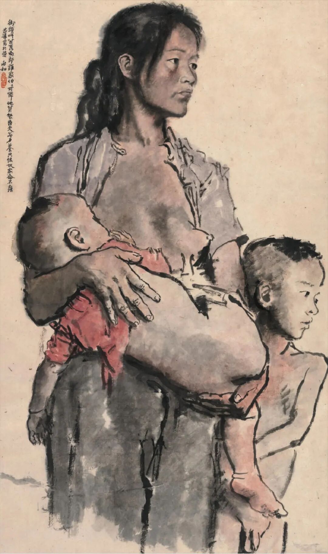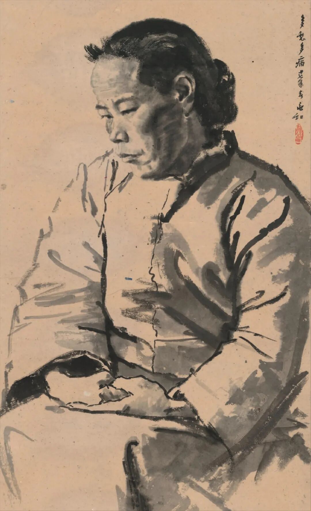 蒋兆和这一时期的创作核心是以“为民写真”的现实主义精神,开创了中西融合的现代水墨人物画新路。他以中国画的纸、笔、墨结合西画的素描与造型技巧,创造性地将山水画中的“皴擦”技法用于人物面部和衣纹描绘,同时,结合素描的明暗关系来表现体积和结构,达到了拙涩老辣、精微传神的艺术效果,具有极强的艺术感染力。