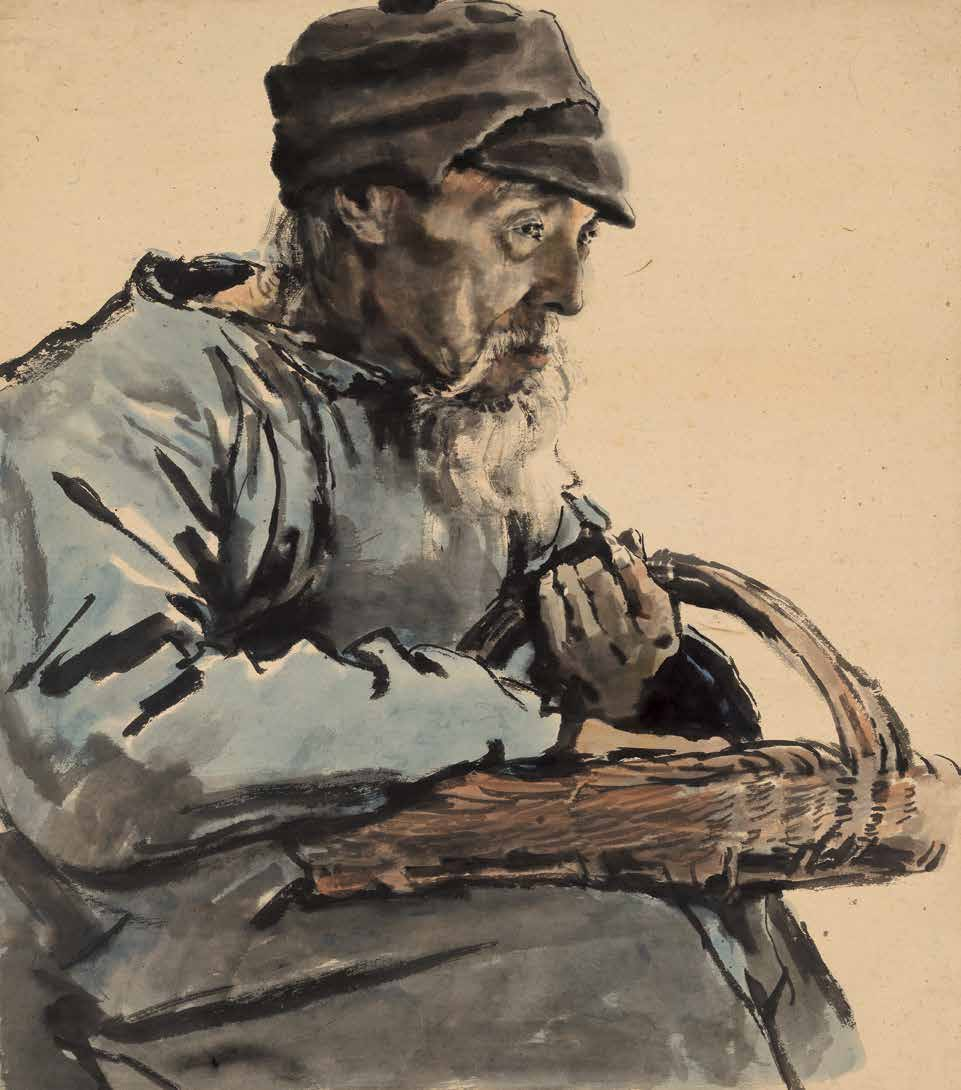 卖小吃的老人 1936年 水墨设色 纸本 73.3cm×64.5cm