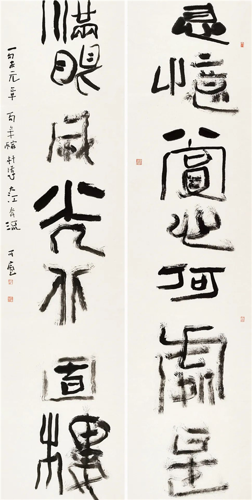 王东声 忽忆满眼七言联 249cm×62cm×2 书法