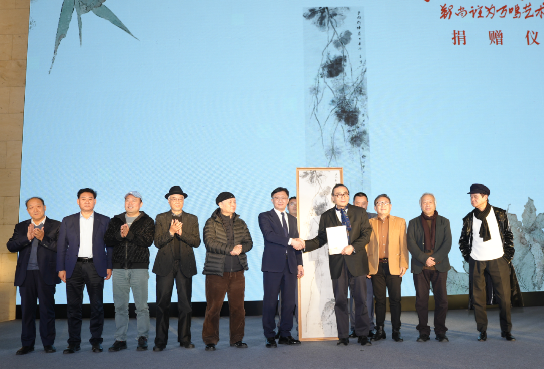 开幕式上,中国美术馆馆长潘义奎,中国美术家协会原分党组书记、驻会副主席徐里,中国文化艺术发展促进会主席、中国国家画院原院长杨晓阳,中国国家画院党委书记燕东升,中国艺术研究院副院长徐福山,北京画院院长吴洪亮,浙江省博物馆党委书记、馆长纪云飞,中国国家画院美术馆原馆长何加林,中国国家博物馆基金会理事李存友先后致辞。随后,在中国美术家协会副主席贾广健,画家尹毅,中国工笔画学会会长陈孟昕,中国艺术研究院国画院院长牛克诚,文物专家吴欢,全国政协委员、叶氏企业集团有限公司董事长叶青,北京百海凝慈善基金会创始人白海宁,恒祥基业集团董事长、北京市工商业联合会副会长李明,李存友,以及中国侨联常务副会长杨长林的共同见证下,刘万鸣将精心创作的艺术作品赠予山东美术馆,由山东美术馆馆长杨晓刚代表山东美术馆接受捐赠,并向刘万鸣颁发收藏证书。刘万鸣致答谢词。最后,山东省人大常委会党组书记、副主任杨东奇,中国文联副主席、中国民间文艺家协会主席潘鲁生,燕东升,杨晓阳,中国国家画院原院长卢禹舜,中国美术家协会原副主席闫平,中国美术家协会原分党组书记、副主席马锋辉,荣宝斋有限公司党委书记赵东,徐福山,中国美术家协会分党组成员、副秘书长、一级巡视员朱虹子,中国美术家协会副主席李翔,原江苏省文化厅一级巡视员、中国画学会创会副会长高云,书画频道董事局主席王平共同为展览启幕。