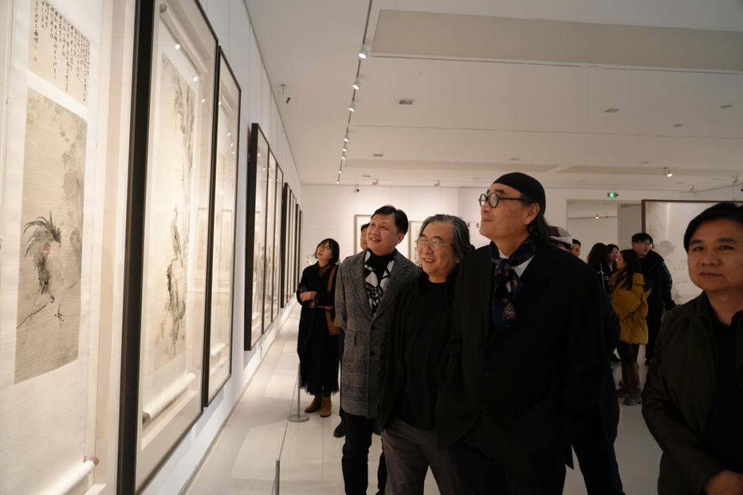 山东省文化和旅游厅党组书记、厅长喻剑南,北京印刷学院党委副书记、院长田忠利,中国女画家协会会长、中国国家画院副院长徐涟,中国国家画院党委副书记、纪委书记王青云,中国国家画院原副院长张晓凌、张江舟、曾来德、纪连彬、于文江,荣宝斋画院名誉院长唐辉,及霍春阳、蒋代明、丰羽、赵建成、石齐、范扬、邢少臣、江宏伟、陈传席、纪清远、王克举、南海岩、邓远坡、蔡葵、刘彦水、李福顺、刘罡、王珂、郝孝飞、刘海勇、王海滨、刘波、阴澍雨、崔进、曾三凯、石峰、王德芳、江鹏、谢晓红、茹峰、余宏达、罗江、王发荣、周一新、石纲、李明、张之军、王潇、莫晓松、蔡玉水、张公者、赵方方、杨云帆、尹建国、黄小波、李剑、孙凡汝、朱建国、董雷、卜登科、吴涛、袁学军、邓柯、陈明、谢小铨、李虹霖、任明辉、金新、王跃奎、陶宏、杜浩、洪厚甜、卢志强、曹俊、郑琳、石磊、刘西洁、黄和平、钱晓鸣、石岩、屈菡、于瀛、邵莉、叶枫、李洋、孙震生、党震、付振宝、王进、张剑、任军伟、李志国、蒋一辉、刘广、张苑、冯知军、颜培大、盛鸣、姜宝昌、乔维、廖勤、李鹏程、赵伟、石村、石满、霍立啸、张烨、杨晶、丛佳琳、朱德华、张如学、魏迪;中共山东省委宣传部文艺处处长、二级巡视员尹永海,山东出版集团党委委员、副总经理李晋,山东省文化和旅游厅艺术处处长刘芳,山东省美术家协会名誉主席张望,山东省美术家协会驻会副主席兼秘书长张宜,山东画院院长常朝晖,山东师范大学美术学院院长刘明波,及柴安东、季桦、李晓雯、沈颖、王居明、上官超英、王磐德、樊磊、孙棋、吴磊、王文灏、刘宁、徐琳、宋述林等300余位来自全国各地的领导、嘉宾和数百位艺术爱好者参加了开幕式。开幕式由杨晓刚主持。