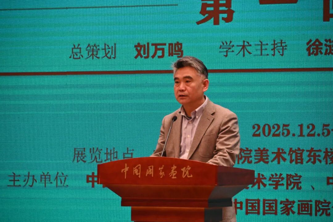 刘万鸣表示,“中国百年素描——学术邀请展(第一回)”以330余件素描精品梳理了百年艺术旅程。素描虽然为外来词,但并非西方独有,其精神内核与孔子“绘事后素”中“朴素、单纯”的美学思想相通。中国国家画院联合兄弟单位共同举办“中国百年素描”展,不以呈现技法为目的,旨在激发同道及观者走进素描的精神世界。刘万鸣认为,对美术创作者而言,素描既是造型手法更是观察方式,东西方素描技法因民族地域、文明脉络的差异而不同,但精神内核是相同的,技法的差异不影响审美精神的共识。展览以“西学东渐”“绘事后素”“多元共融”为脉络,勾勒出素描在中国引进、消化到再生创新的历程,是一场学术寻根与文化对话。线条与明暗承载着时代脉搏、民族美学,映照出数代艺术家在融汇中西道路上的思索和汗水。此次学术梳理是一次重要的“深扎”与“回望”,助力我们重温前辈大家“技道并重”的探索精神,再次审视中国艺术现代性的生成机理,为当代创作提供历史坐标与思想启迪。他相信本次展览引发的思考将转化为推动中华优秀传统文化“两创”的坚定行动。