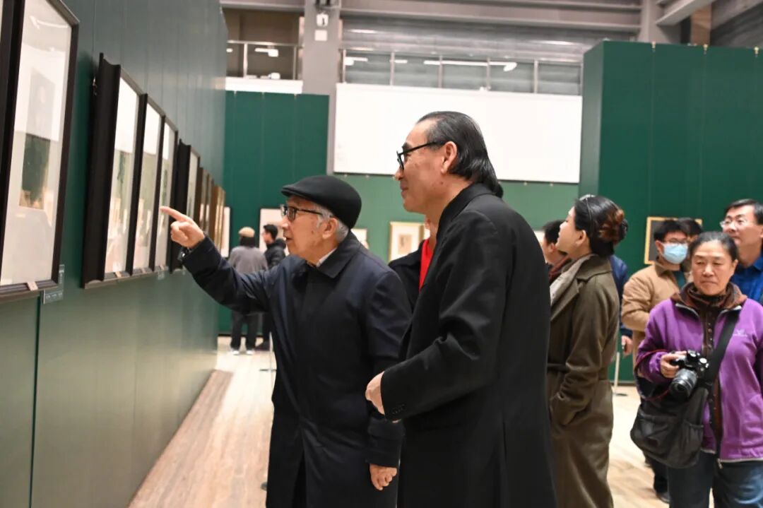 十三届全国人大常委会秘书长、全国人大社会建设委员会主任委员杨振武,中国艺术研究院原院长连辑,中央文史研究馆馆员王明明,中国国家画院党委书记燕东升,北京印刷学院党委副书记、院长田忠利,中国国家画院原院长卢禹舜,中国美术家协会副主席马锋辉,中国美术家协会原分党组书记吴长江,中国美术家协会分党组成员、秘书长王平,北京大学艺术学院院长李洋,中央广播电视总台文艺节目中心节目部副主任石岩,中国美术家协会原副主席何家英,原江苏省文化厅副厅长、一级巡视员高云,中国艺术研究院国画院院长牛克诚,中国国家画院原副院长赵卫、曾来德、纪连彬、于文江,中国国家画院美术馆原馆长何加林,首都师范大学美术学院院长王海滨,浙江画院副院长余宏达,浙江省美术家协会副主席缪宏波,中华慈善总会名誉副会长白海宁,恒祥基业集团董事长、北京市工商业联合会副会长李明,中国艺术研究院创作指导委员会副主任、国画院艺术委员会主任赵建成,荣宝斋原副总经理唐辉,北京画院原副院长莫晓松,浙江省油画家协会副会长汪文斌,《百年巨匠》总策划杨京岛,中央广播电视总台社教节目中心办公室主任王林,中央广播电视总台制片人张虹,中央广播电视总台编导陈红,参展艺术家代表马振声、郭怡孮、张祖英、李燕、刘巨德、唐勇力、赵奇、史国良、刘庆和、李晓林、姚大伍、朱春林、叶南、周一新、赵培智,老中青艺术家、理论家刘曦林、孙增华、赵准旺、李庚、李乃宙、陈传席、邓嘉德、孔紫、邢少臣、吴迅、蒋威、于新生、陈池瑜、王鲁湘、陈风新、王永亮、周尊圣、李洋、韦红燕、张录成、于光华、赵永康、曹建华、罗江、周士钢、许俊、高天民、汪港清、陈鹏、潘文海、王文英、胥建国、王居明、李宽、马硕山、林若熹、王厚祥、蔡大礼、康守永、王登科、宋一平、罗敏、郭子良、魏广君、张晓东、陈树东、张留成、赵方军、张继刚、朱其、王心刚、柳妍、华天雪、王德芳、石峰、王桂勇、张曙光、周思旻、周一新、申卉芪、方政和、雷苗、晁岱双、王东声、赵欣歌、郭殿声、李惠东、徐冬青、潘松、王雪峰、党震、王剑武、袁玲玲、斯日古楞、王一帆、杜松儒、张猛、丁荭、王治、吴海霞、郑庆余、孙震生、姚瑞江、谭浩楠、刘锐、朱剑、王煜、王瑛、唐朝轶、于洋、张蕾、晏晓斐、邱琳、黄洋、唐凝、刘松、张鹏、任军伟、牛明明、魏迪、廖勤、苏睿、王茹、王帅、韩昊、任赛、李卓、白杰云、郑佳兴、石磊、孔亮、韩飞、梅跃辉、付振宝、何佳芮、陈散吟、卢虓、刘相连、王霄、张庆,画院各职能部门人员董雷、卜登科、刘博涵、吴涛、袁学军、沙永汇、邓柯、陈明、邱雷、张楠、任明辉、刘德峰、金新、吴笛、康雷、王跃奎、程兴林、陶宏、常欣、杜浩、张苑、冯知军、颜培大、马子雷、汪浩然、张祉恩、谭玉、李俞霖、萌芳,艺术家家属代表蒋代明、蒋一辉、吴宁、董一沙、李江、崔冬晖、袁加、刘山花、祁艳、王小燕、张宏芳等出席开幕式。