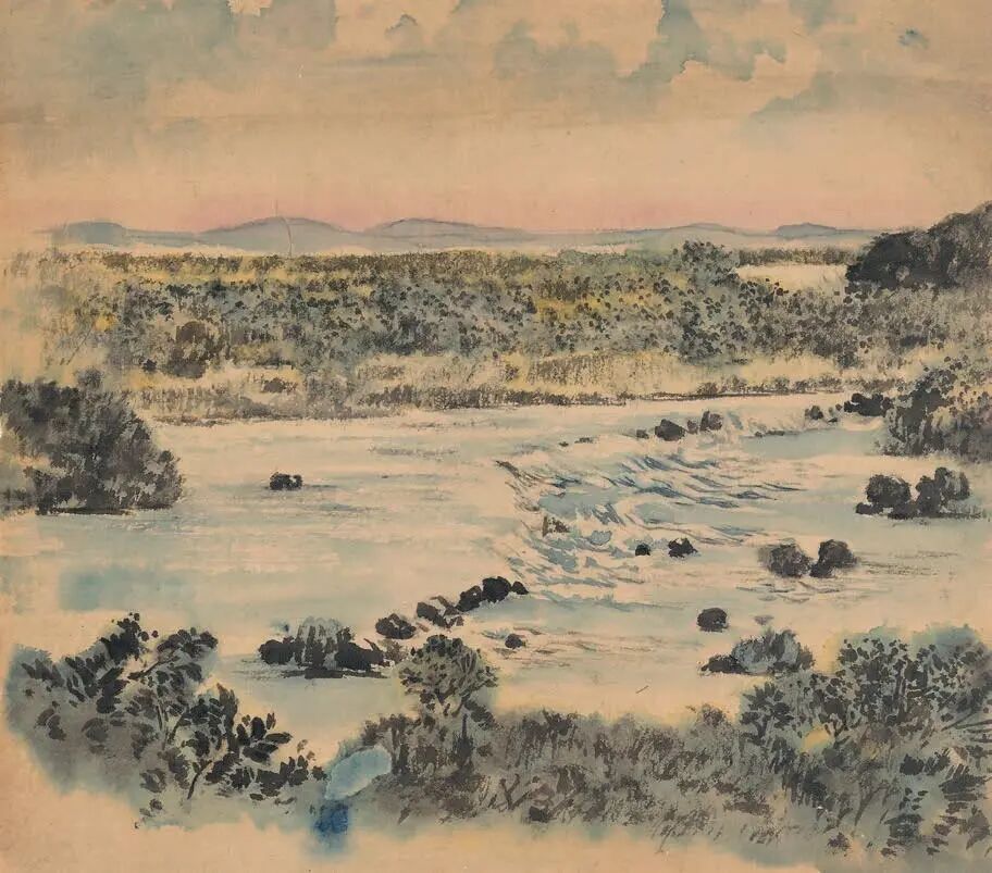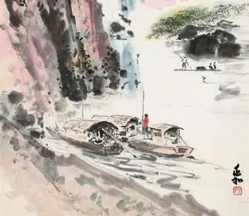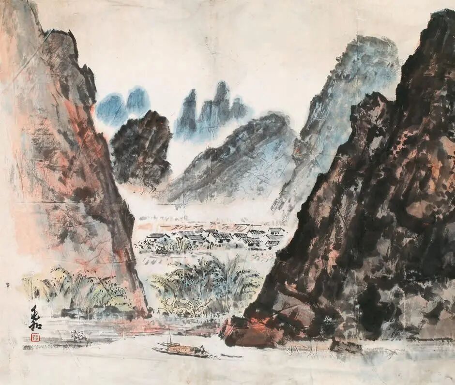 漓江写生 1962年 水墨设色 纸本 35.5cm×48cm