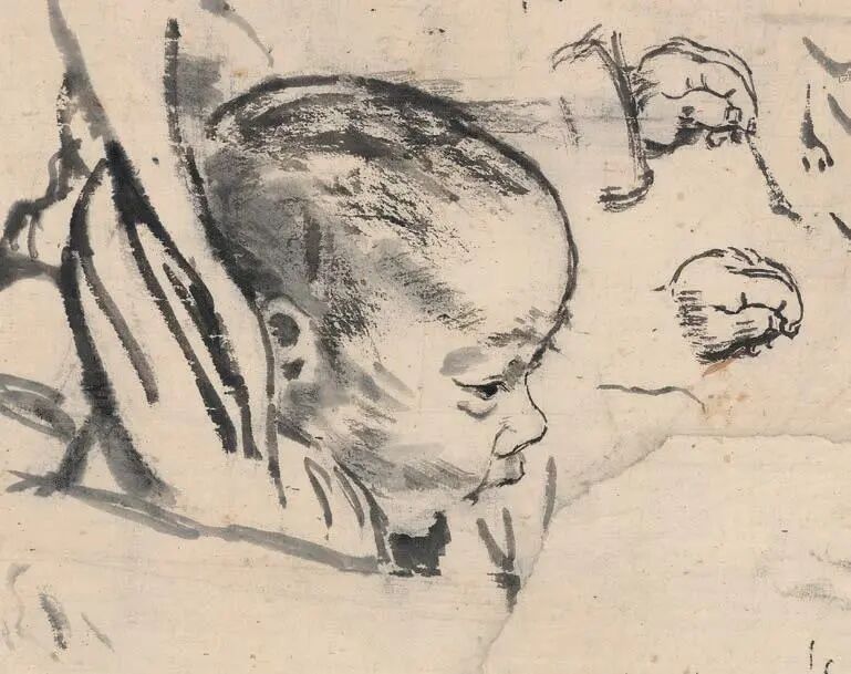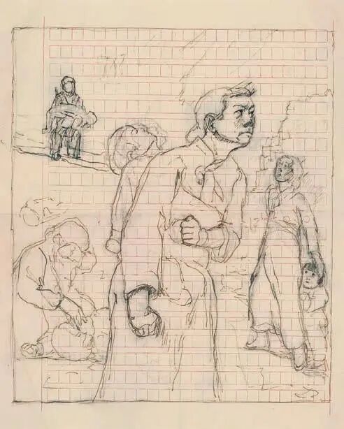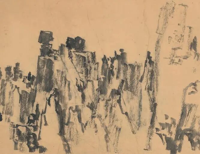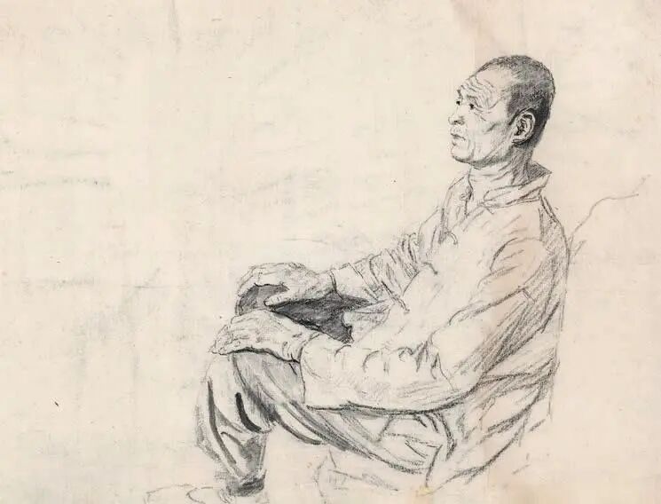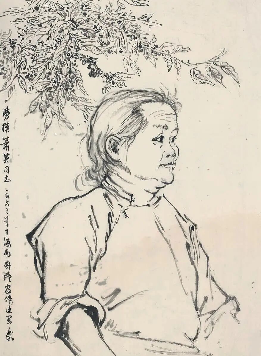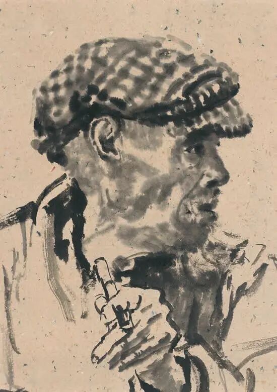 “素描为骨,中国墨为肉”,是蒋兆和速写写生技法的核心,他运用西方素描的解剖、结构和体积感来塑造人物,使其坚实、可信;但同时,他摒弃了西方素描固定光源下的复杂明暗,改用中国画的线条和皴擦来表现结构。蒋兆和的速写写生对中国现代水墨人物画具有革命性的意义,他成功地将西方写实造型体系融入中国水墨语言,找到了一条既能精准刻画现代人形象,又能发挥民族笔墨精神的道路,奠定了中国现代写实水墨人物画的基石。他的这套与徐悲鸿的教学思想相结合的方法后来被总结为“徐蒋体系”,成为新中国美术院校人物画教学的核心体系,培养了几代中国人物画家,影响巨大。