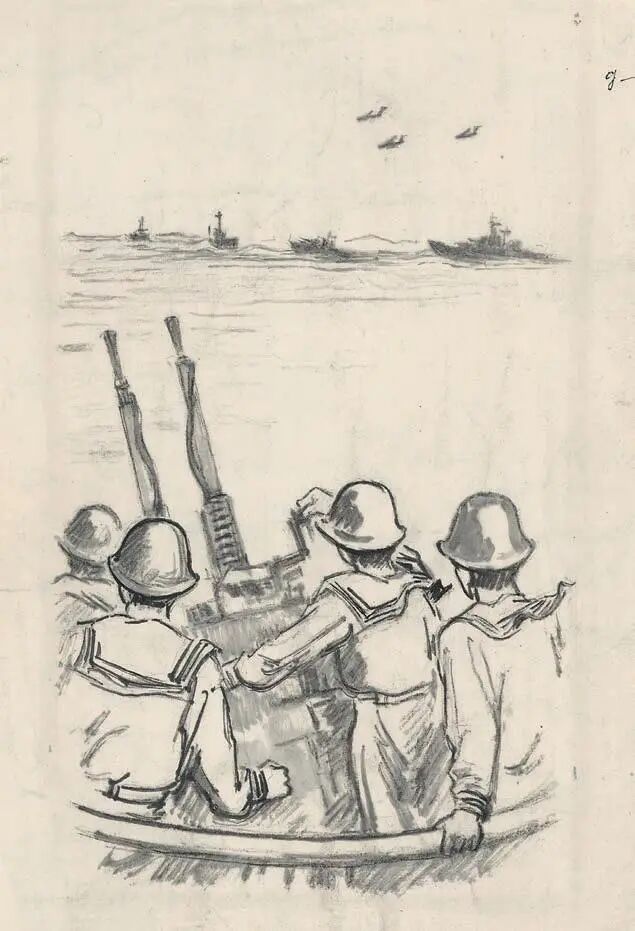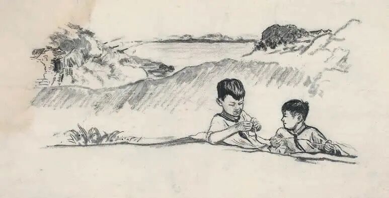 《少年支前活动大队》插图 1958年 铅笔 纸本 16.5cm×32cm