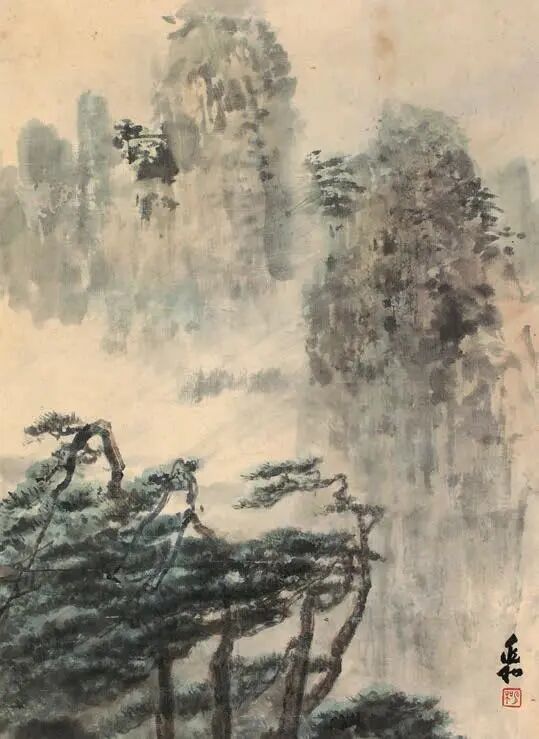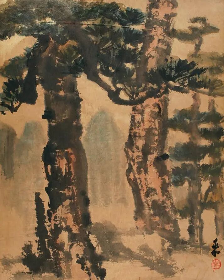苍松 1962年 水墨设色 纸本 58.6cm×47.1cm