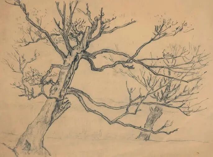 树木速写 约20世纪5060年代 铅笔 纸本 24.7cm×33.6cm