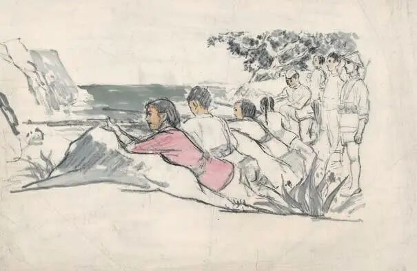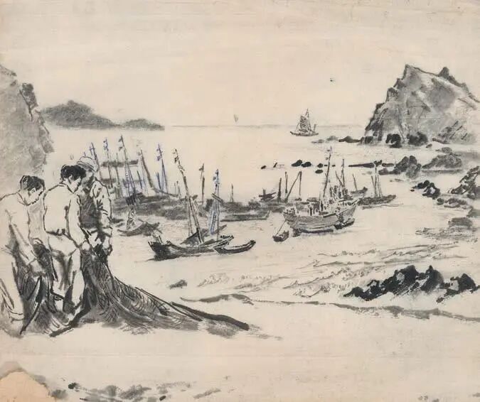 福建前线速写·海边 1958年 水墨设色 纸本 29.7cm×35.4cm