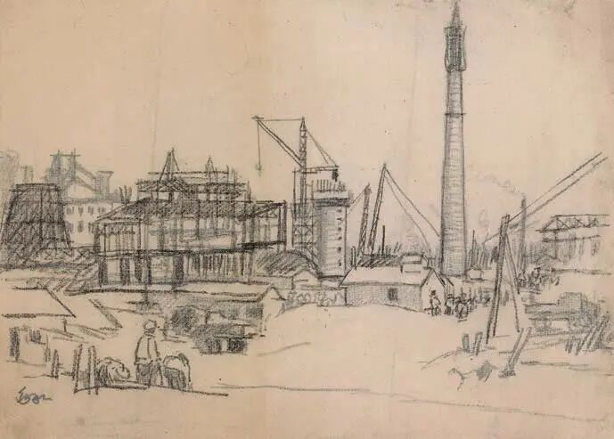 钢厂写生 1958年 水墨 纸本 25.2cm×18.6cm