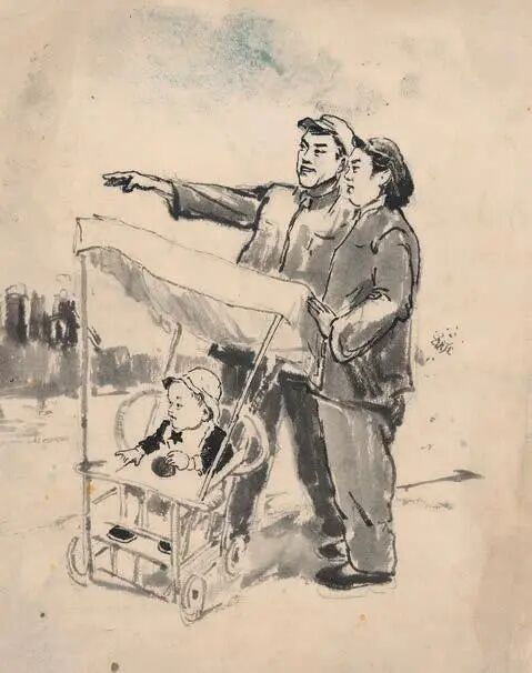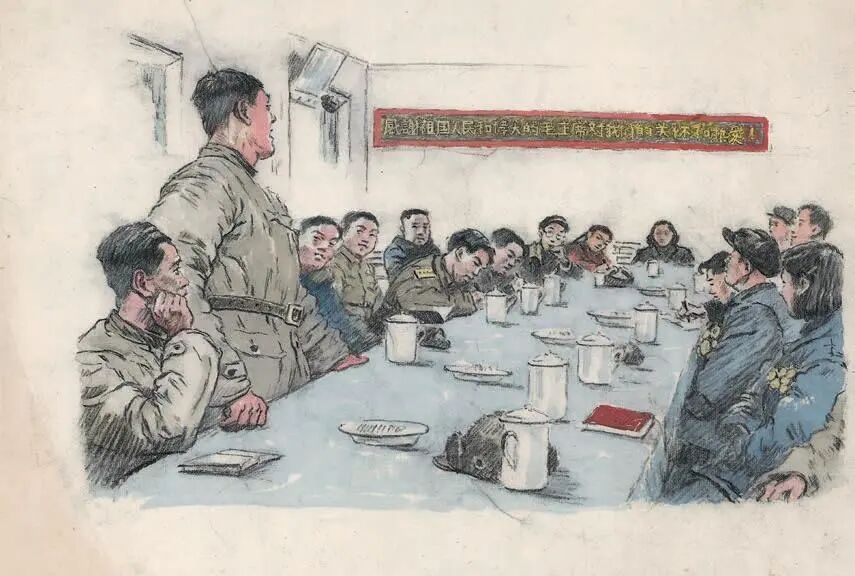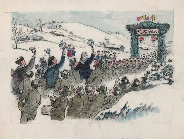 迎接亲人——志愿军部队热烈欢迎慰问团 1956年 水墨设色 纸本 21.8cm×32.4cm