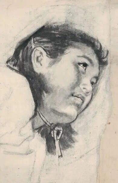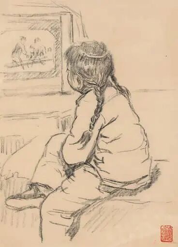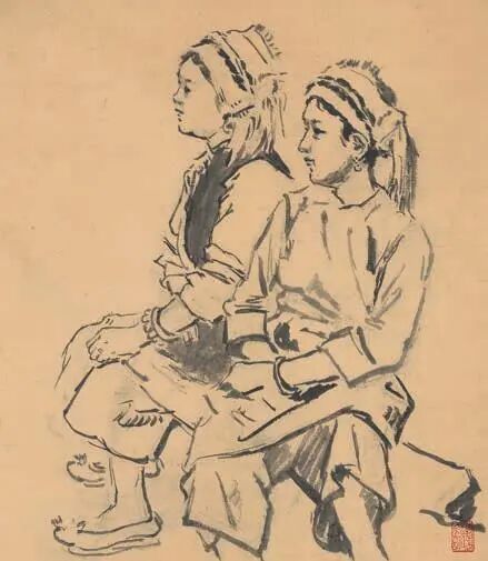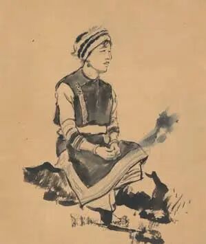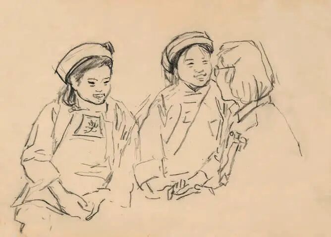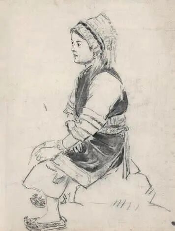 点苍山下的金花速写 1962年 铅笔 纸本 33.7cm×25.6cm