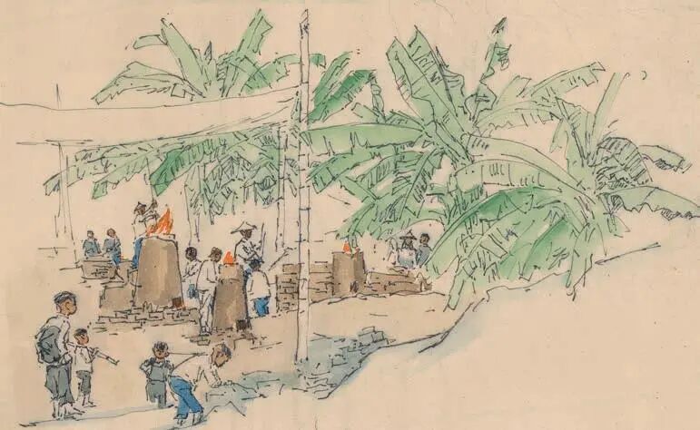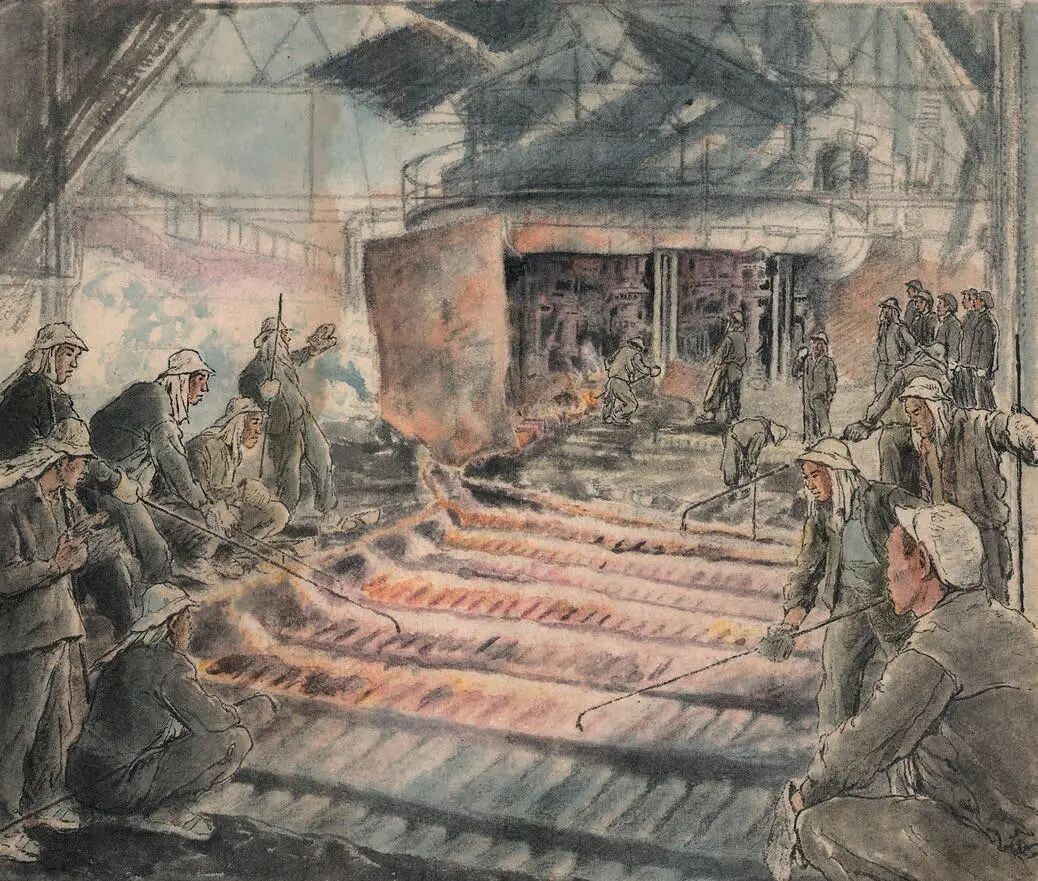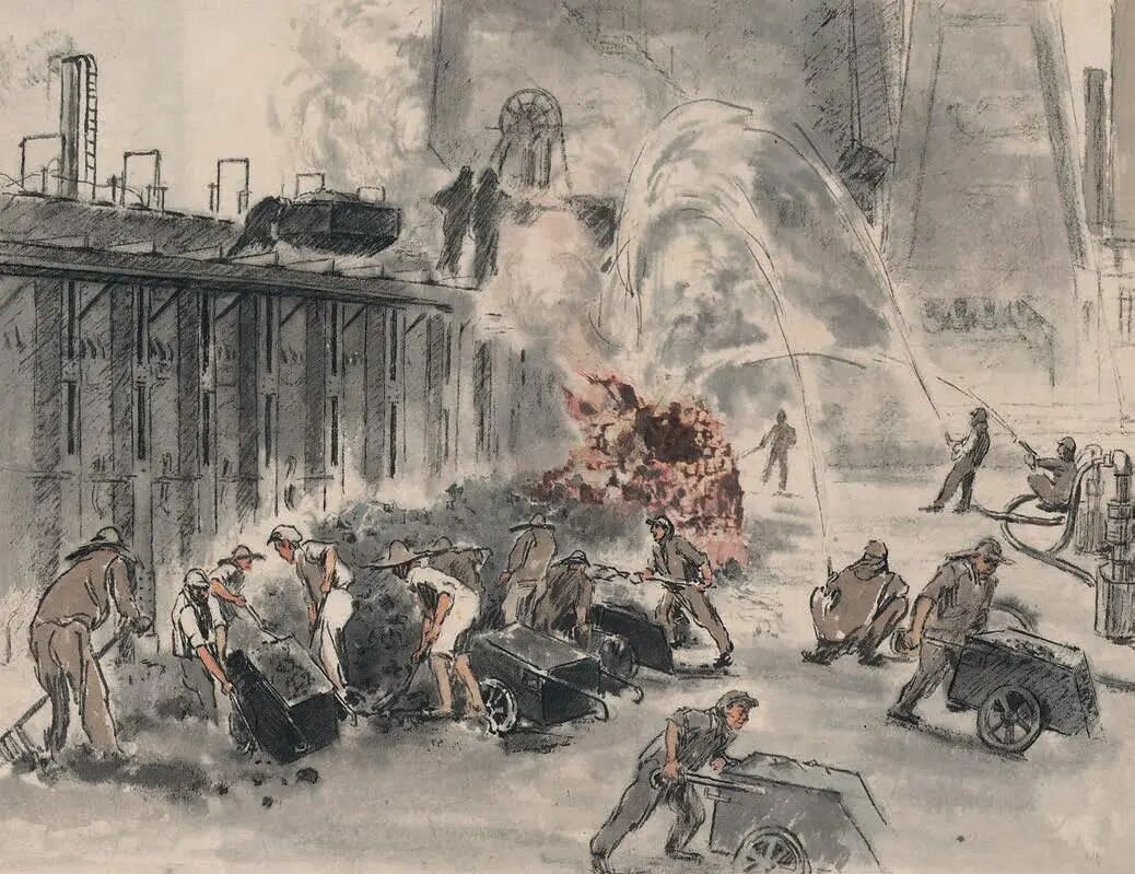 福建前线速写·冶炼 1958年 水彩 纸本 19.6cm×31.8cm