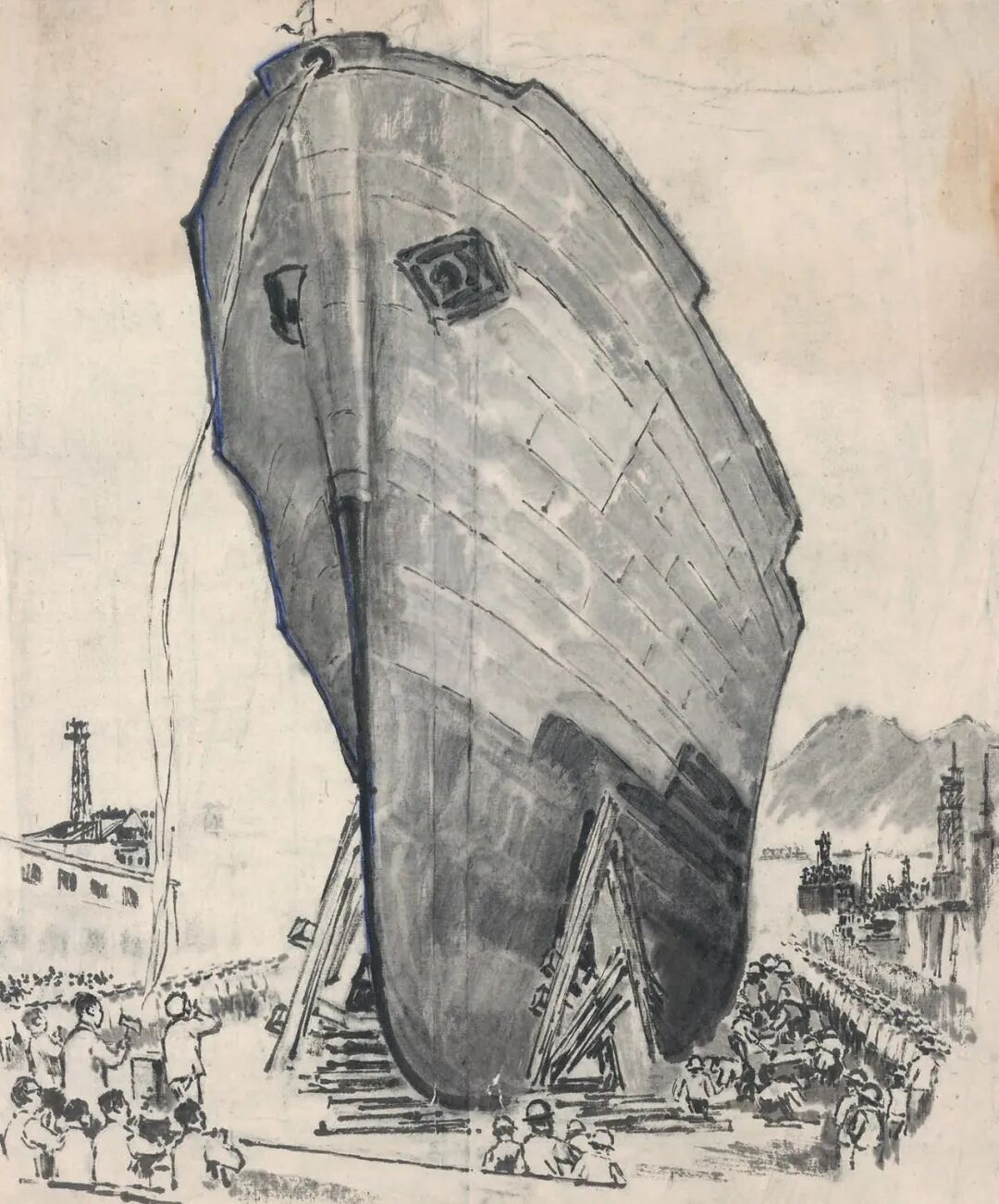 福建前线速写·入海 1958年 水墨 纸本 30cm×24.8cm
