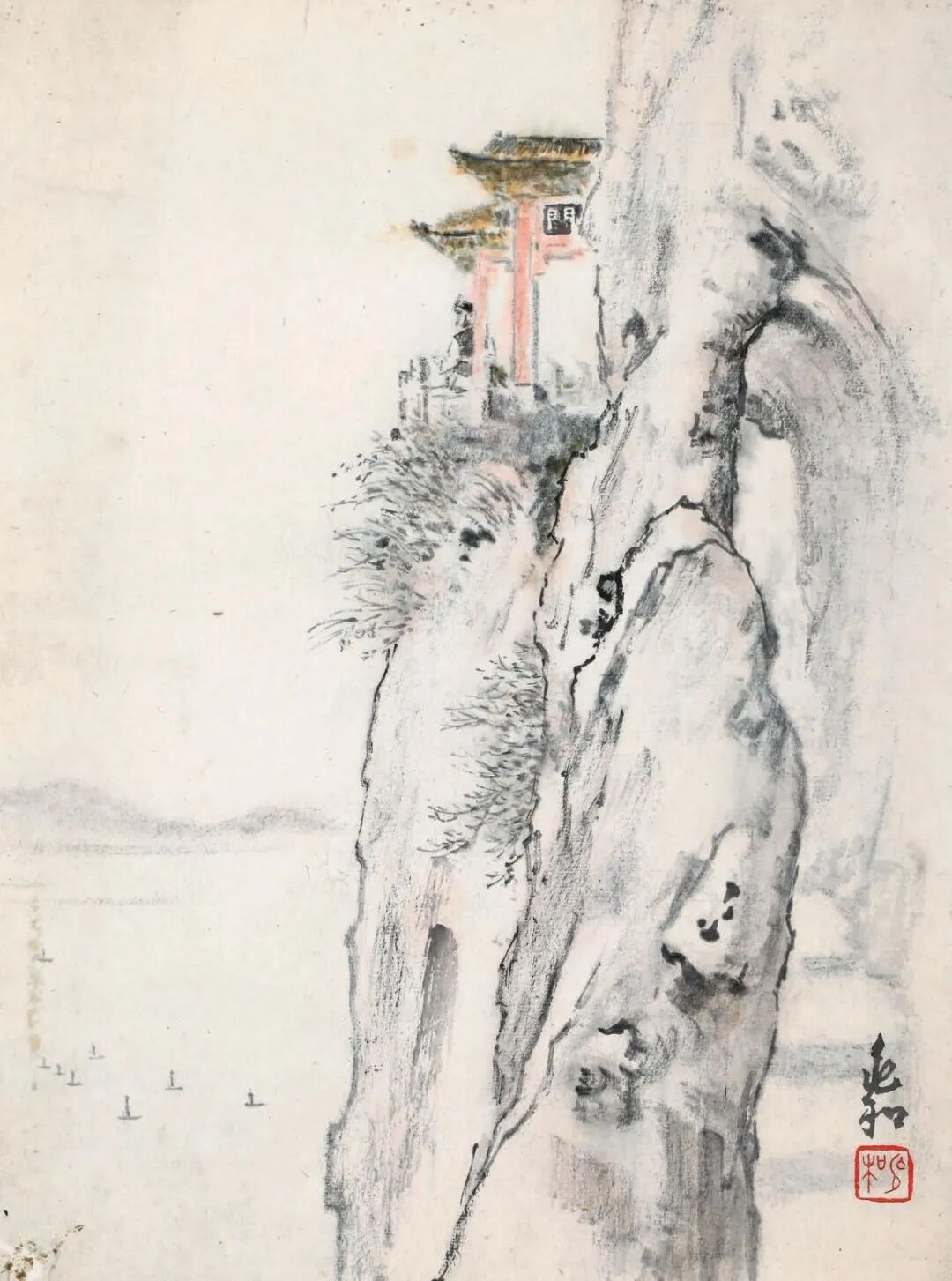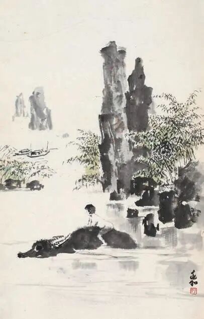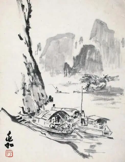 漓江写生 1962年 水墨设色 纸本 35cm×26.7cm