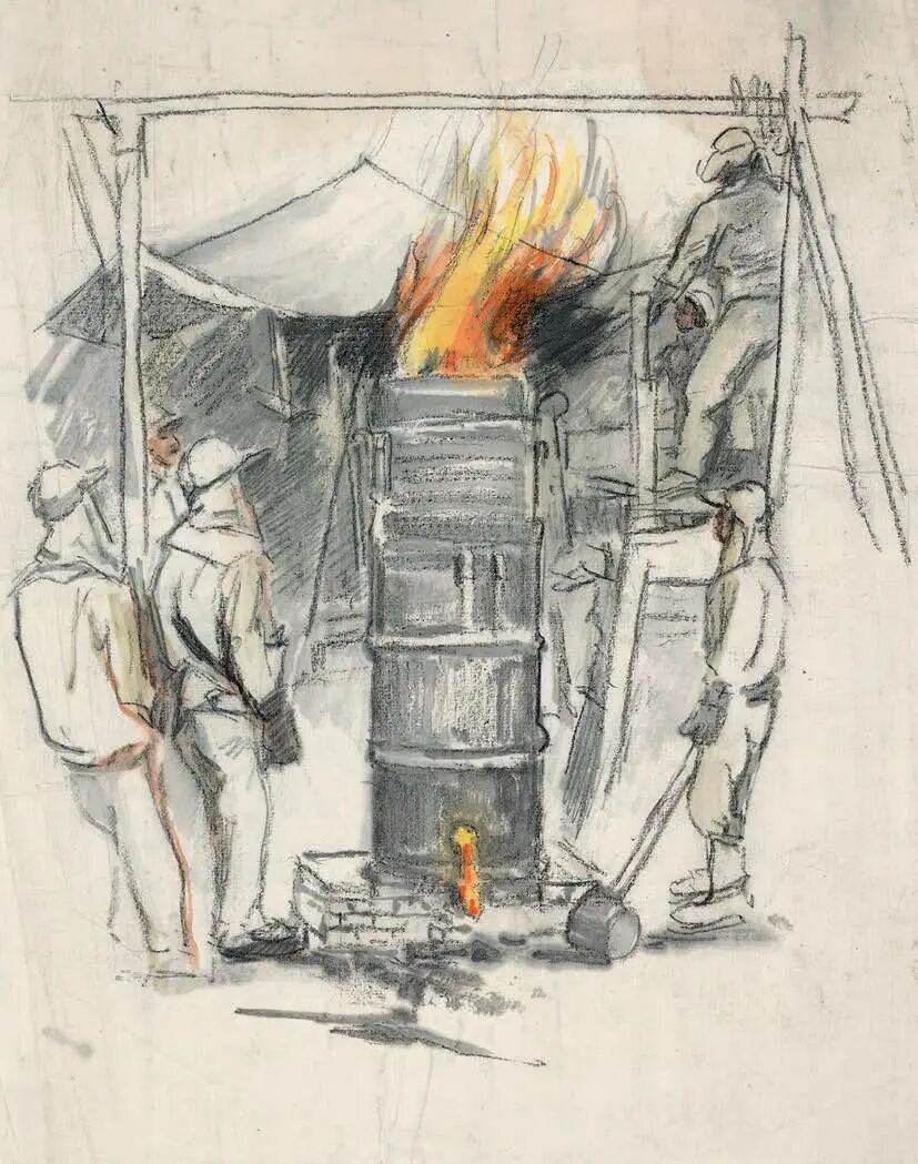福建前线速写·冶炼 1958年 水墨 纸本 32.8cm×25.8cm