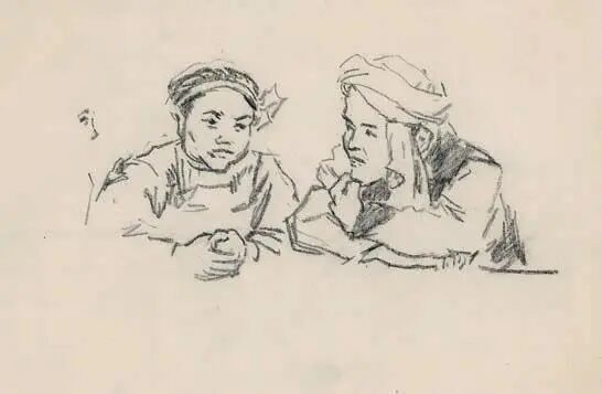 塞上写生·少数民族人物 1958 年 铅笔 纸本 17.8cm×31.4cm