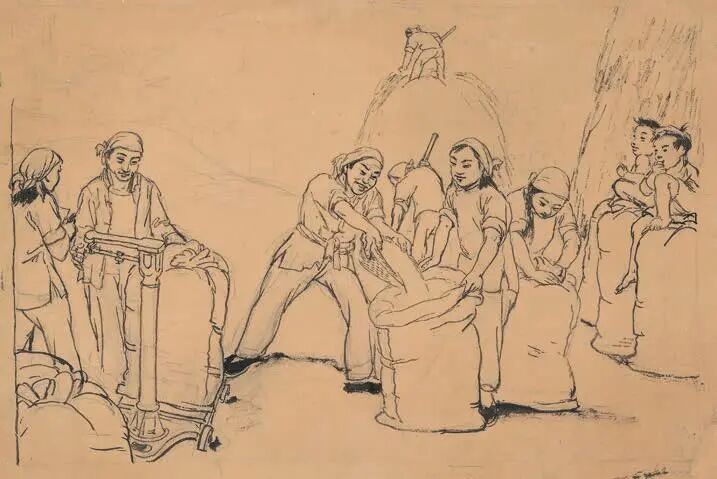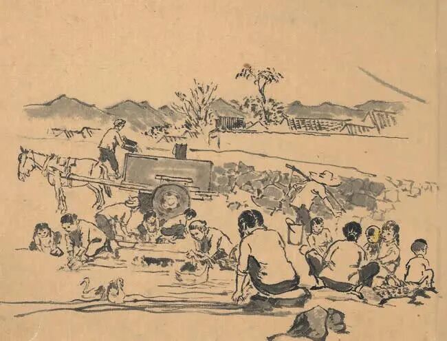农村四化速写 1956年 水墨 纸本 17cm×25cm