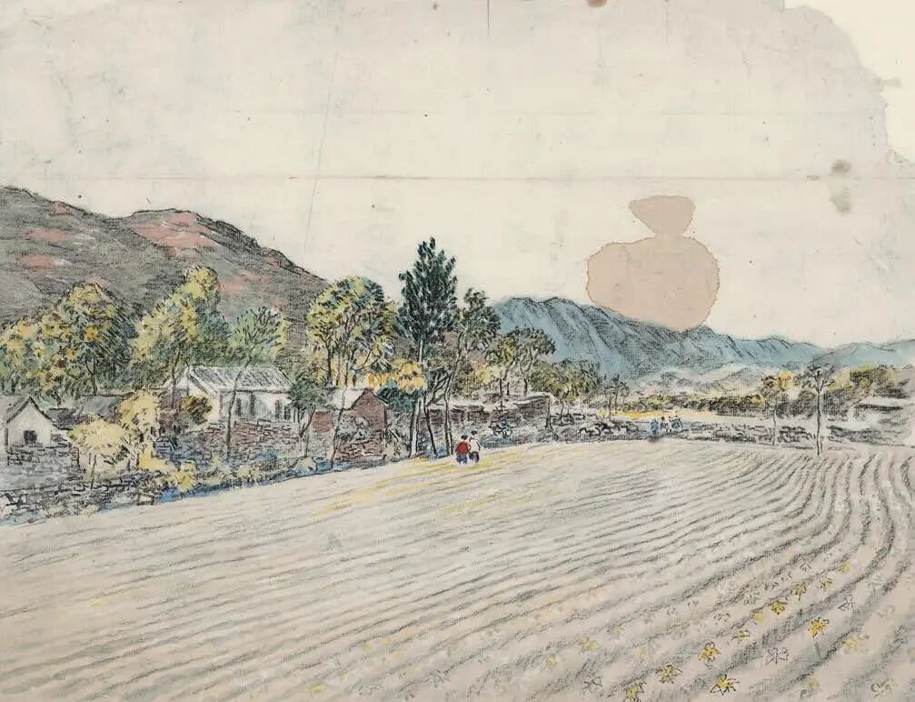 农田写生 1958 年 水墨设色 纸本 27cm×35cm