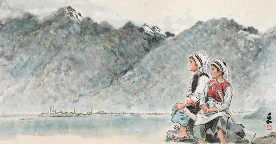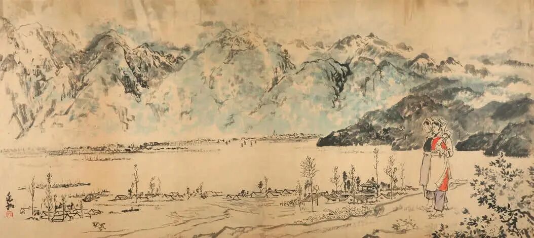 点苍山下的金花 1962年 水墨设色 纸本 46.3cm×88cm