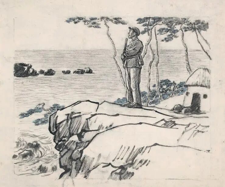 福建前线速写·海防线上 1958年 铅笔 纸本 20.2cm×23.8cm