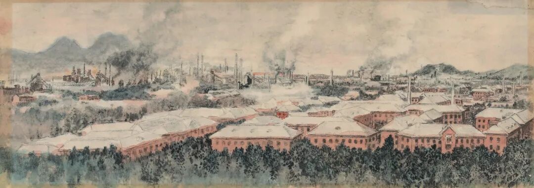 钢厂写生 1958年 水墨设色 纸本 24.5cm×68.5cm