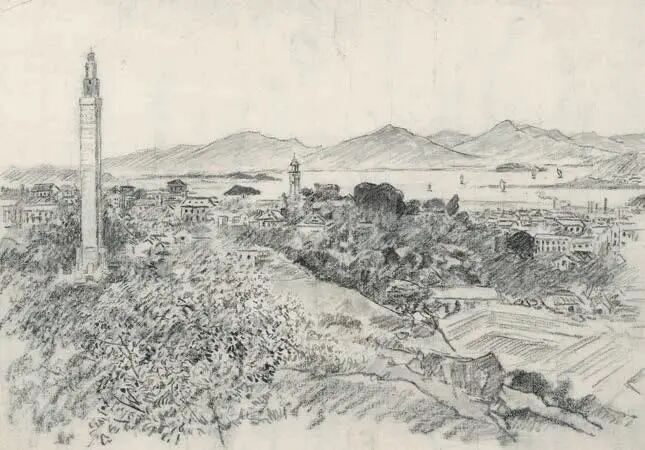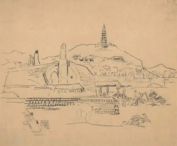 风景速写 1956年 铅笔 纸本 27.4cm×33.4cm