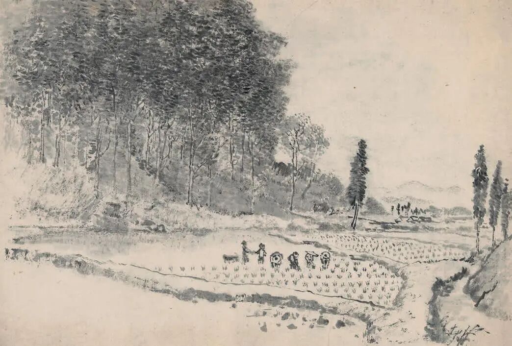 插秧写生 1960年 水墨 纸本 24.7cm×36.3cm