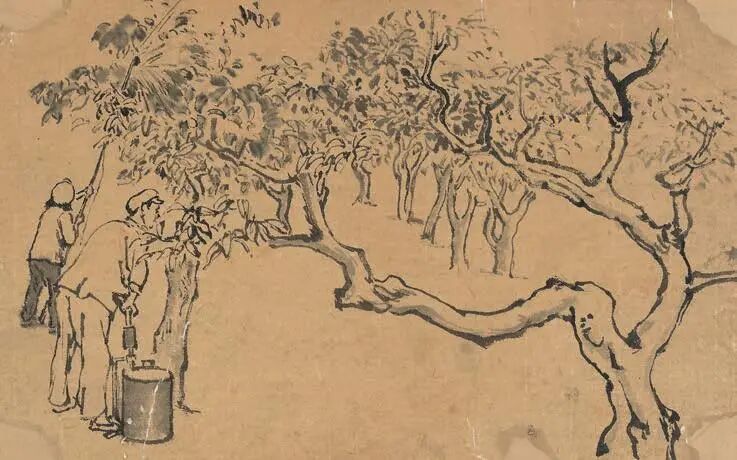 塞上写生·果园 1958年 水墨 纸本 16.2cm×25.8cm