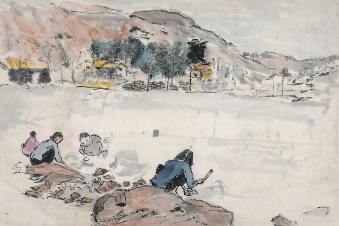 河边写生 1963年 水墨设色 纸本 22.7cm×34cm