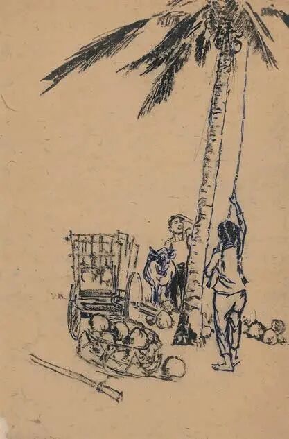 打椰子 1963年 铅笔 纸本 30.1cm×19.8cm