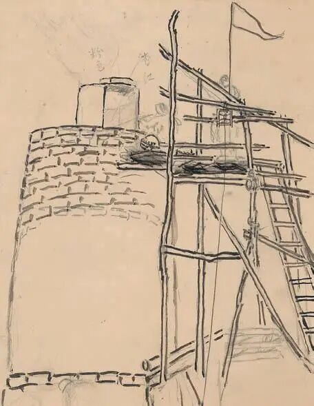 塞上写生·工地 1958年 铅笔 纸本 19.2cm×26.7cm