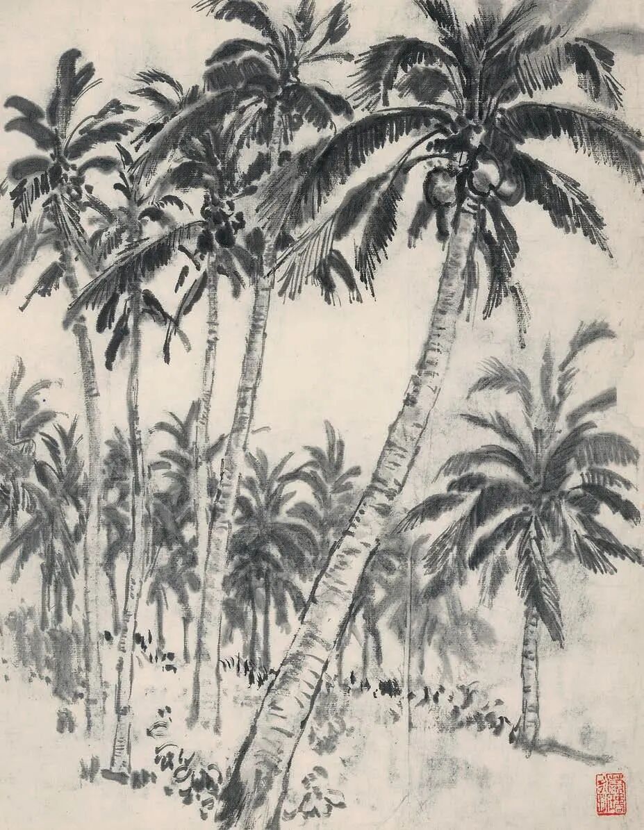 椰林写生 1963年 水墨 纸本 33.8cm×26cm