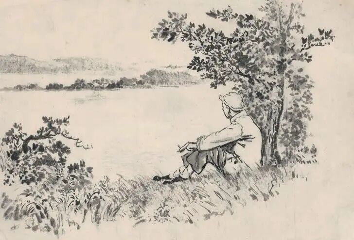 河边写生 1958年 水墨 纸本 26.5cm×35.5cm