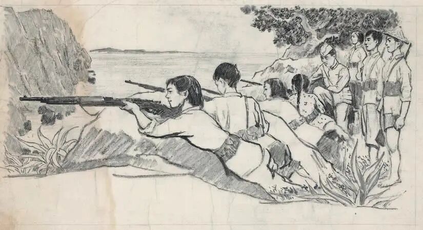 福建前线速写·何厝乡的民兵 1958年 铅笔 纸本 24.2cm×37.6cm