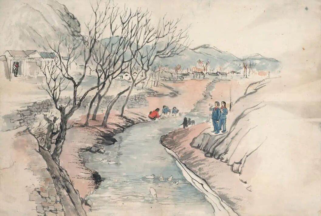 村庄速写 1962年 水墨设色 纸本 26.5cm×31.5cm