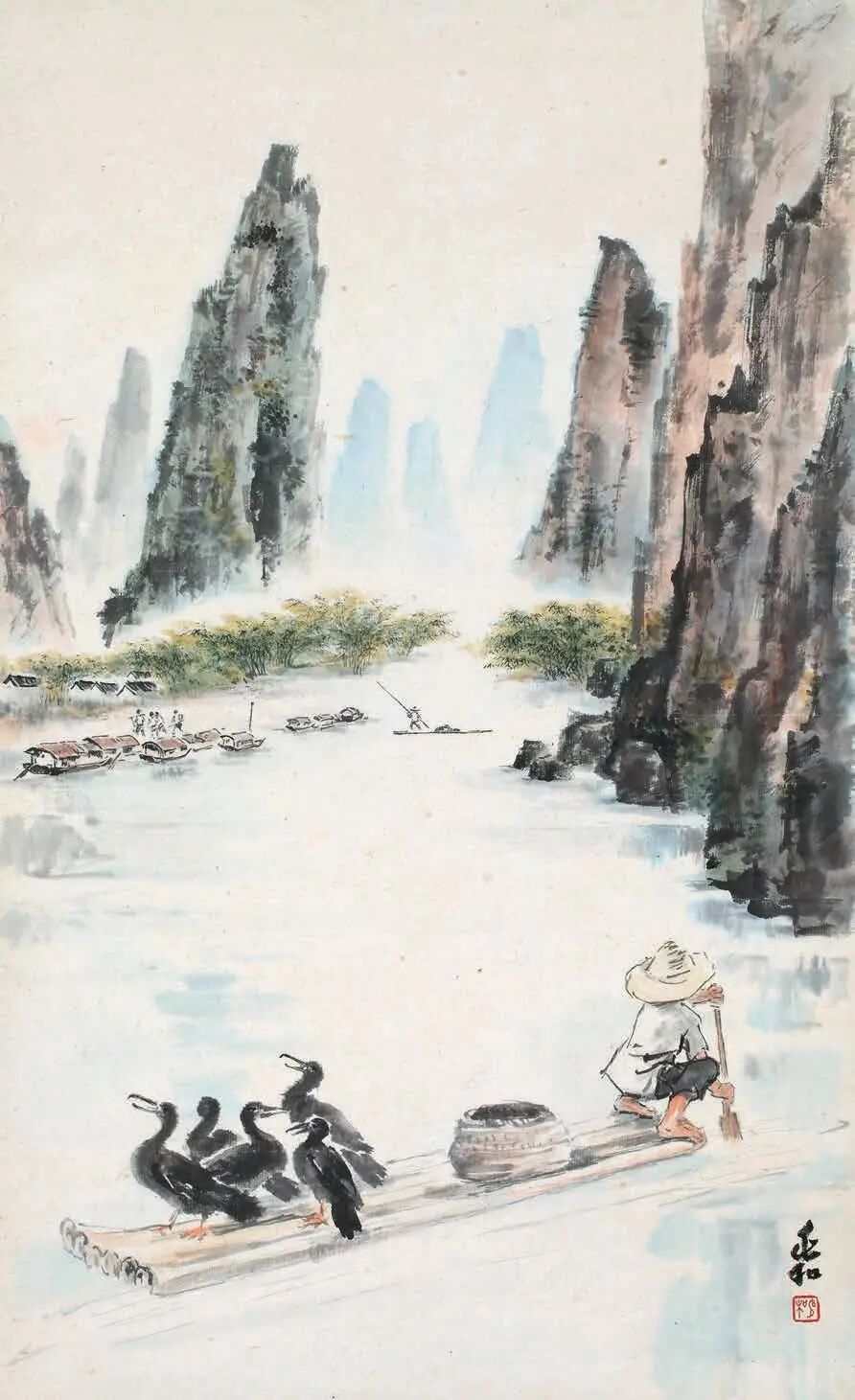漓江写生·鱼鹰 1962年 水墨设色 纸本 67.5cm×49.8cm