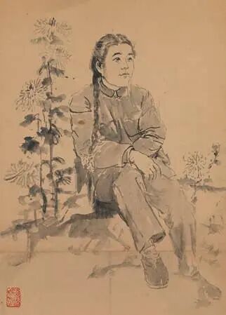 女青年 1954 年 水墨 纸本 35cm×27cm