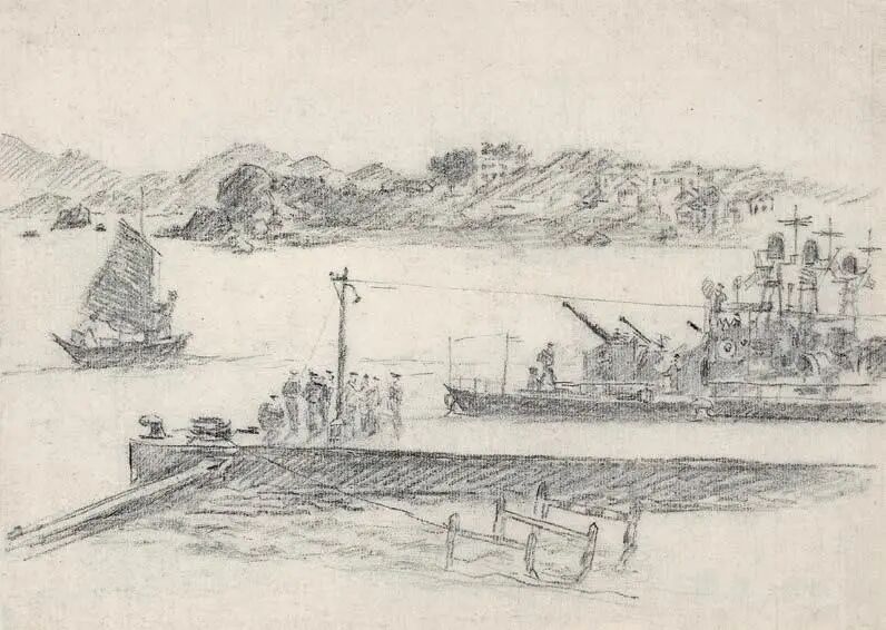 福建前线速写·码头 1958年 铅笔 纸本 20.5cm×29cm