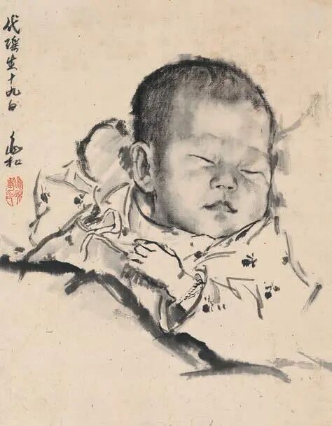 婴儿像 20世纪4050年代 水墨 纸本 23.8cm×30cm