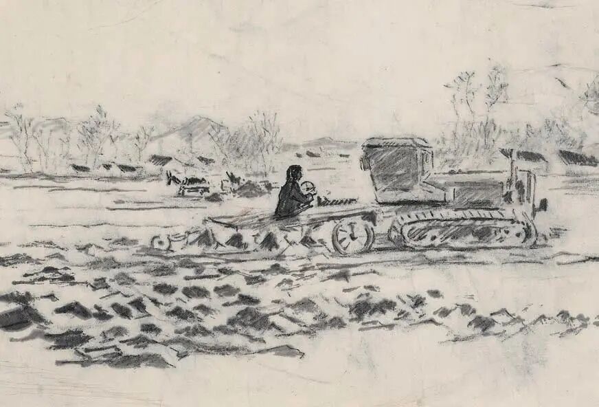 四季青人民公社速写·修好拖拉机 1959年 水墨 纸本 23.2cm×31.2cm