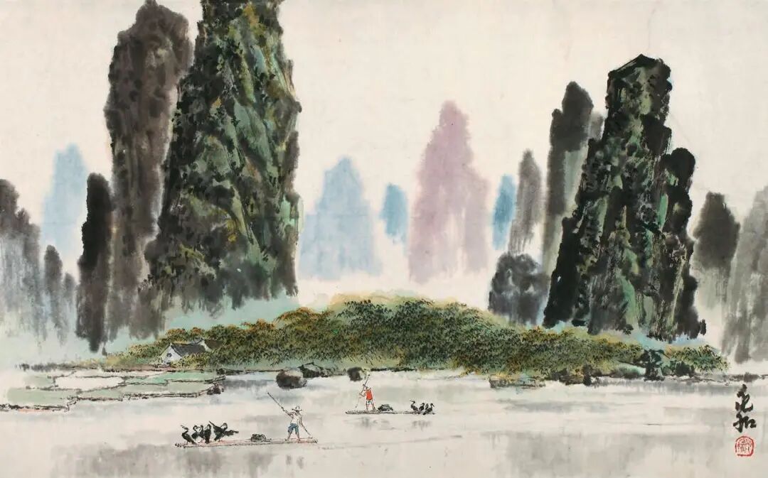 漓江写生 1962年 水墨设色 纸本 48.5cm×75.5cm