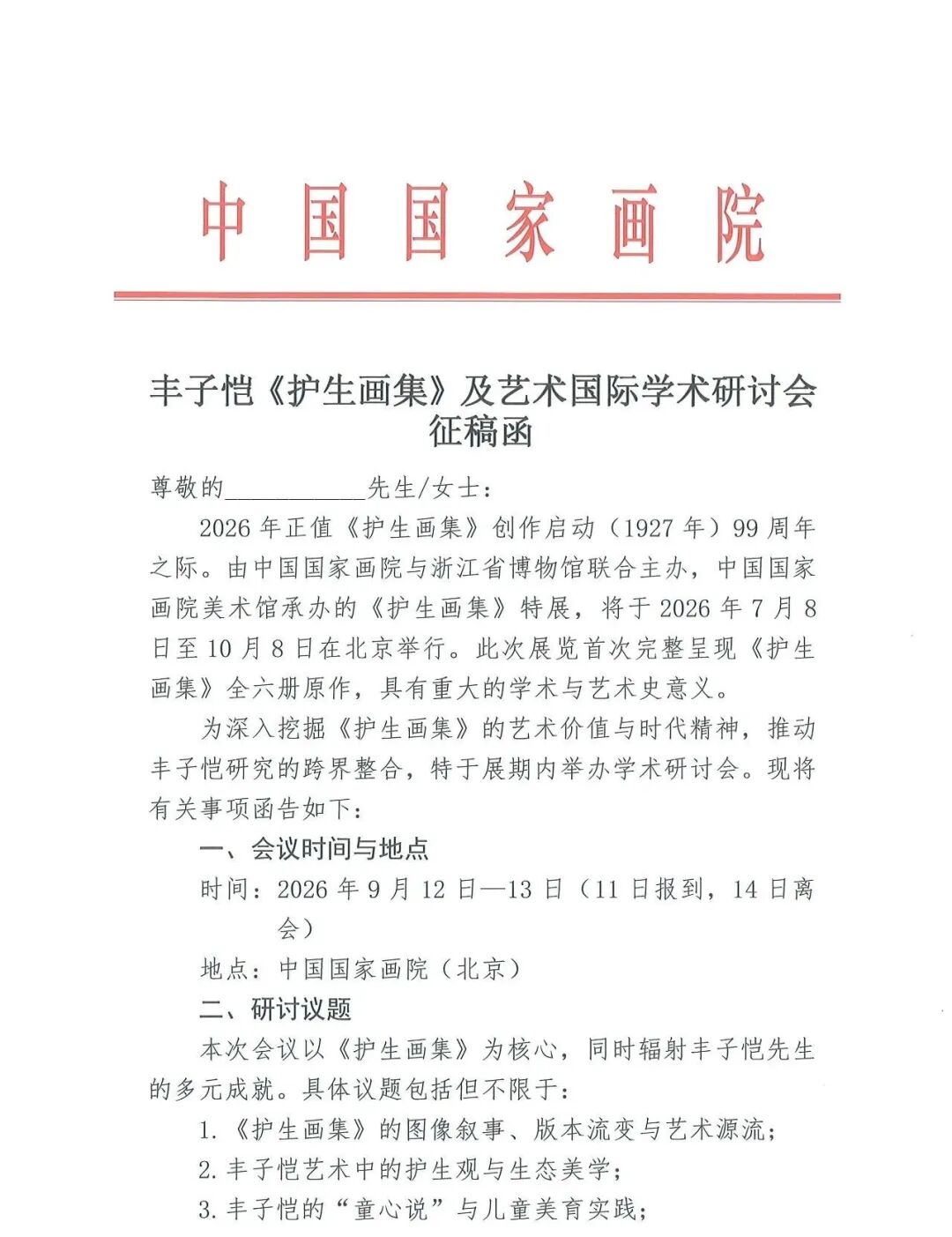 丰子恺《护生画集》及艺术国际学术研讨会征稿函